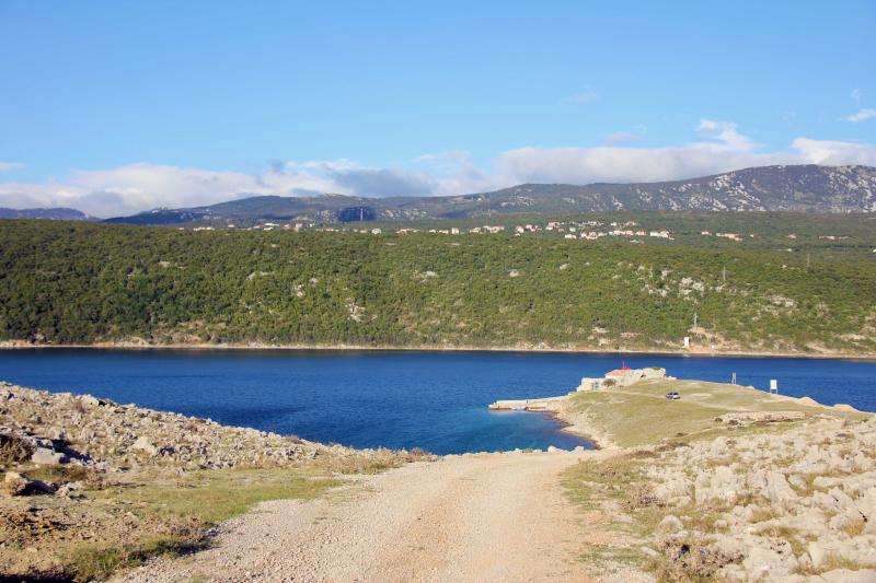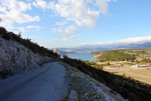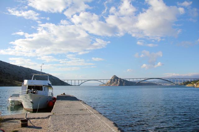 Pogled na Krčki most in otok Sveti Marko iz zaliva Voz.